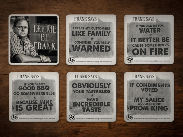 Coasters- Just like his famous BBQ sauce Frank, the owner of The Silver Spur, has a little bite to him.